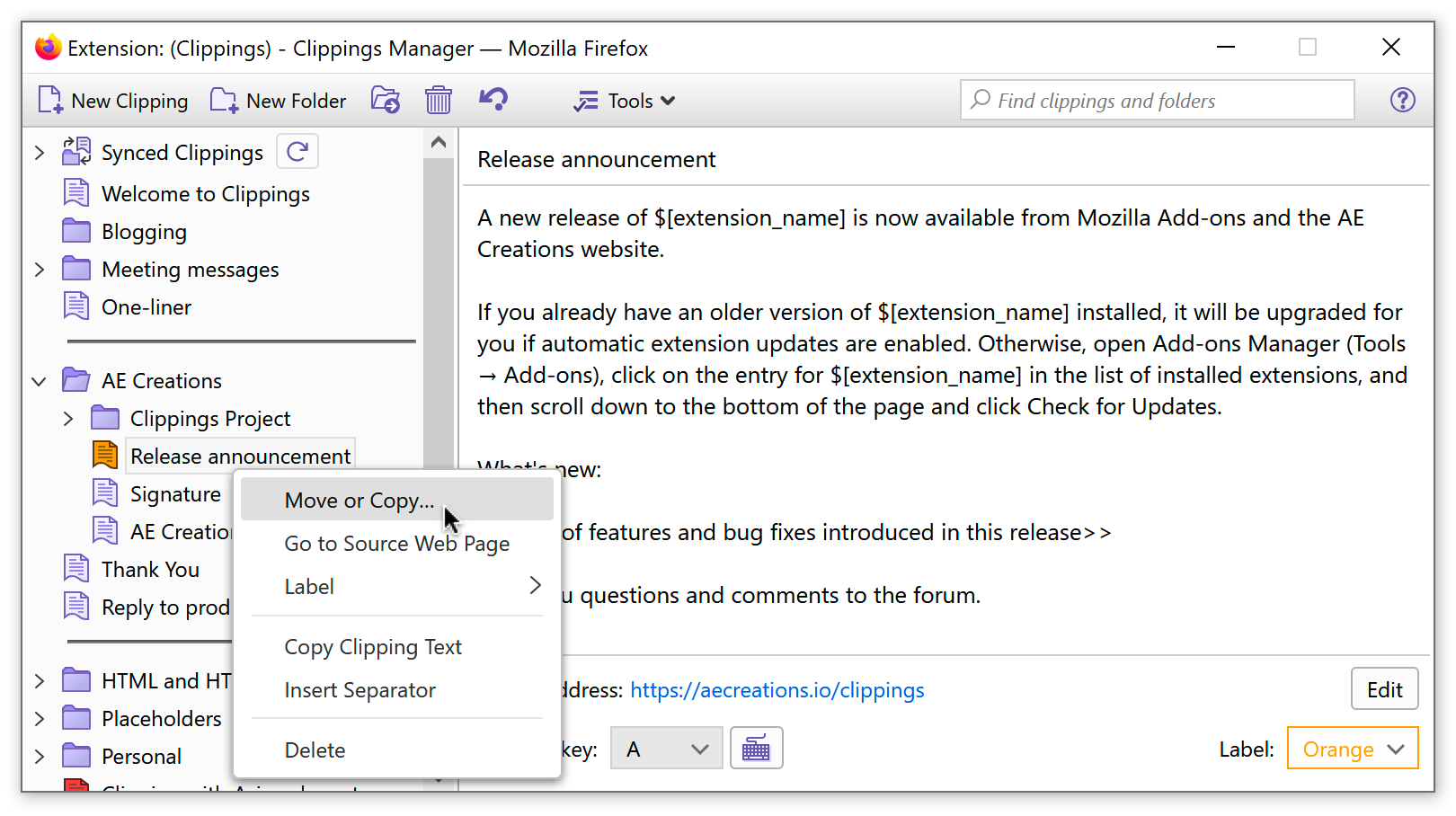 Looking for Clippings for Thunderbird? Get it from the Install page.